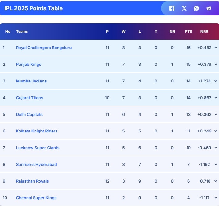 Chennai Super Kings and Rajasthan Royals were already eliminated from the competition.