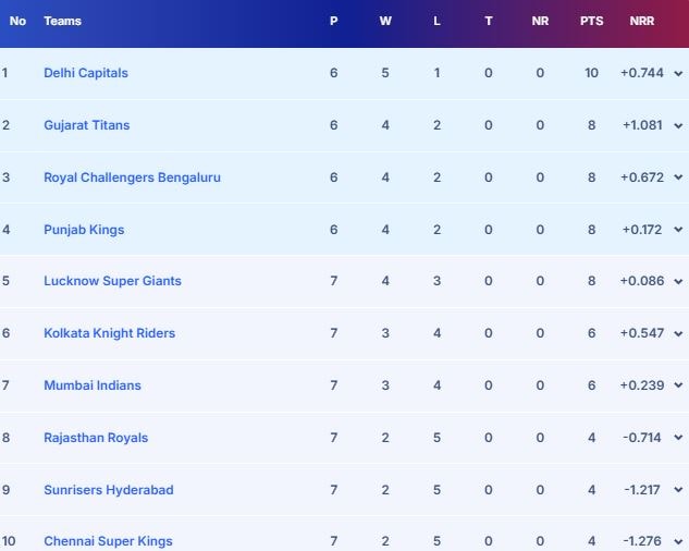 IPL 2025 Points Table: